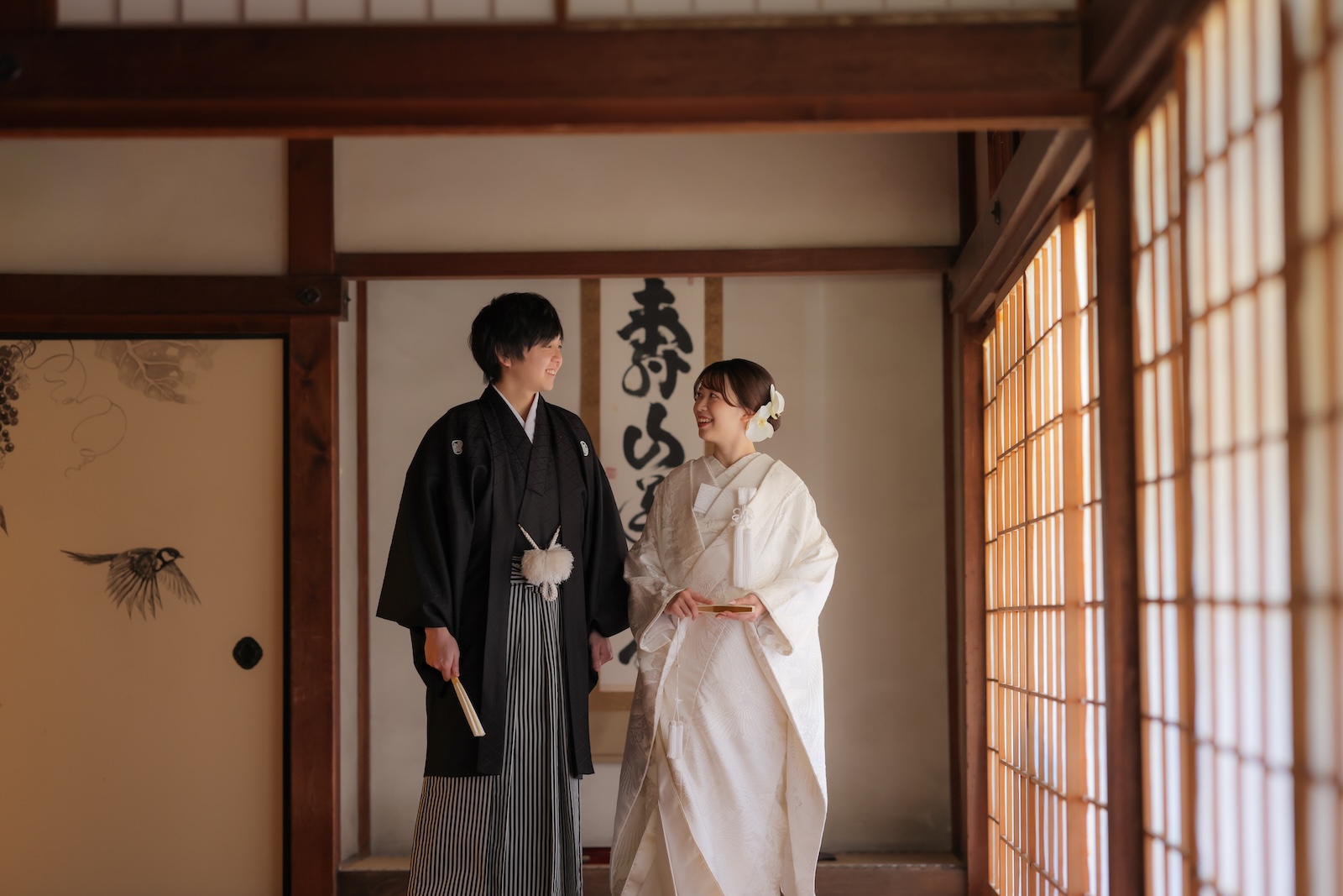 金屏風のお写真が人気。清閑なお寺で貸切撮影