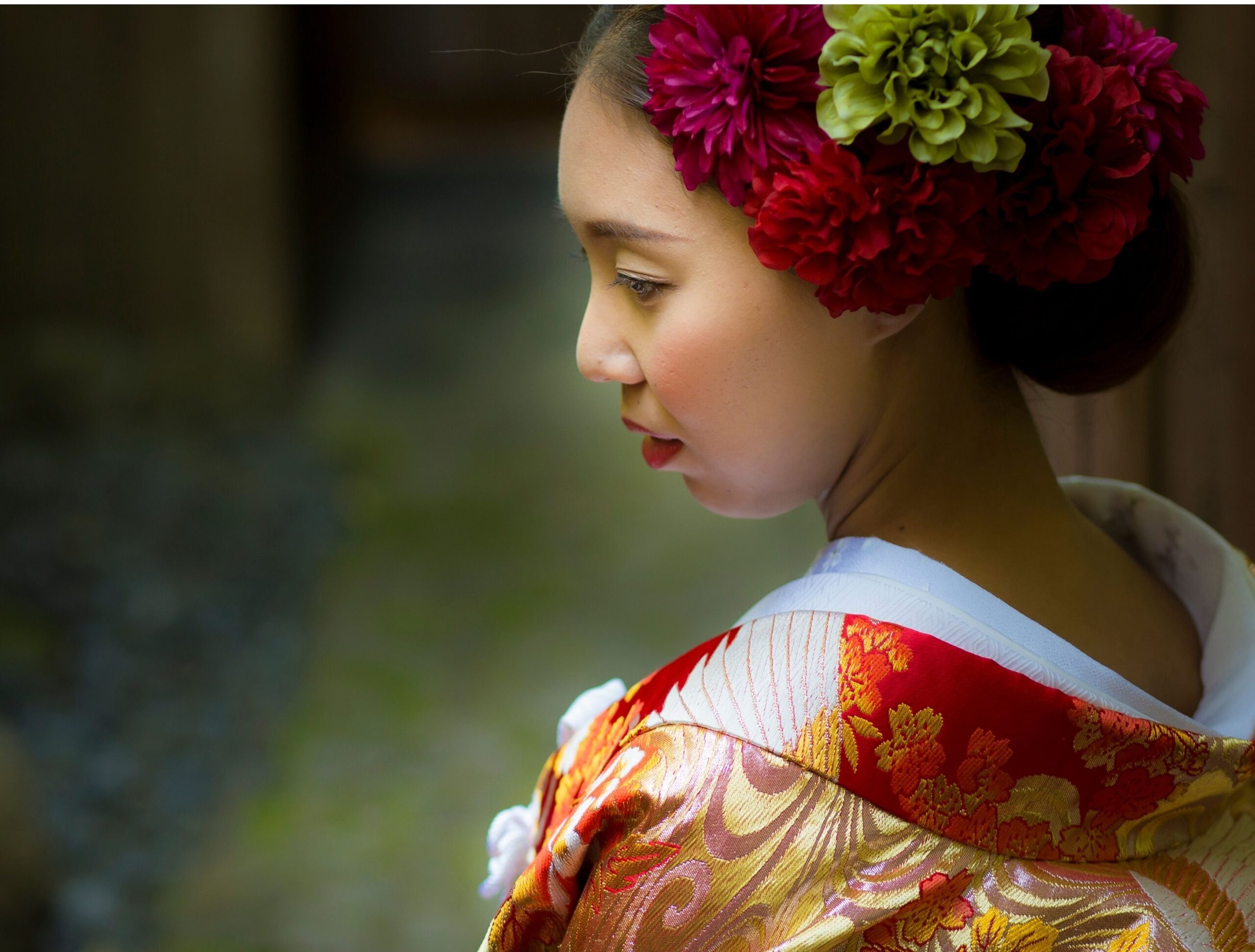色打掛「4.赤−鶴」を着用されて前撮り・フォトウェディングをされたお客様の実際のお写真をご紹介しています。